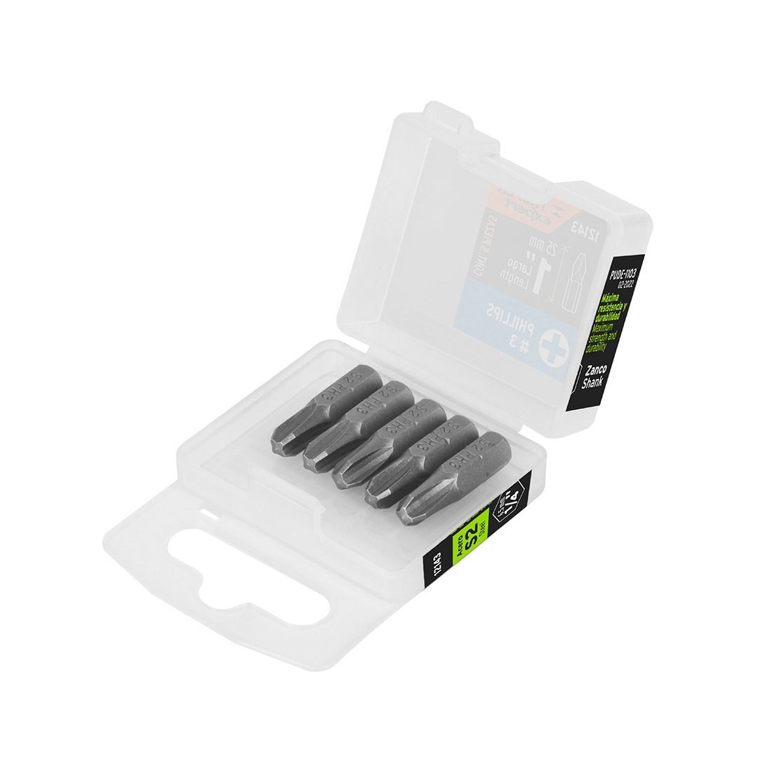 Estuche con 5 puntas de cruz PH3 largo 1″ TRUPER