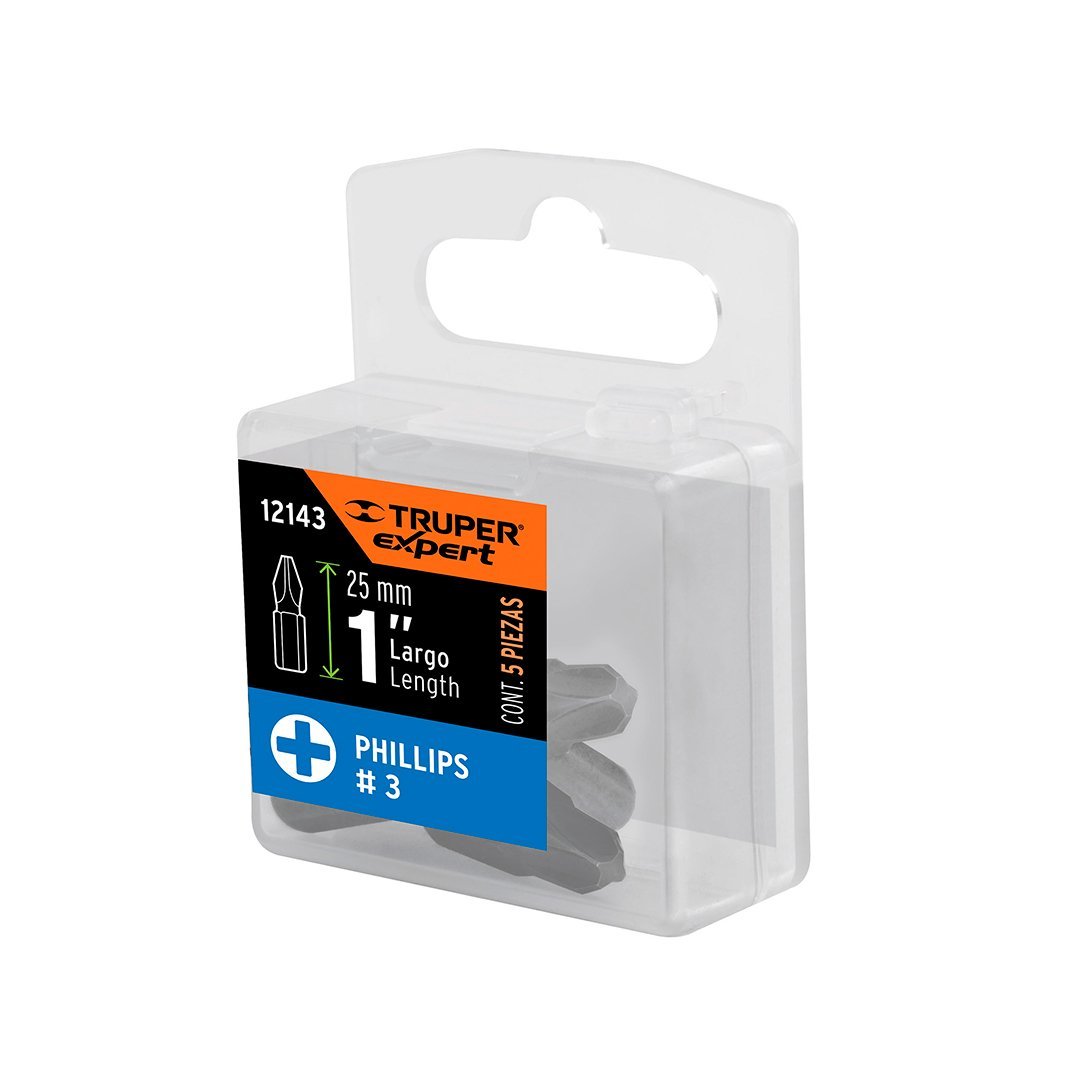 Estuche con 5 puntas de cruz PH3 largo 1" TRUPER cantidad