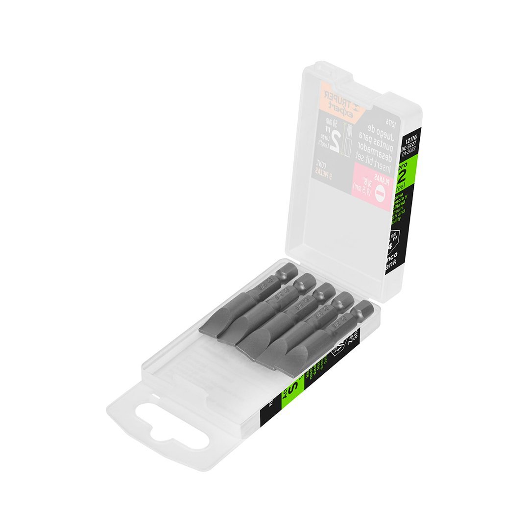 Estuche con 5 puntas planas de 3/8″ largo 2″ TRUPER