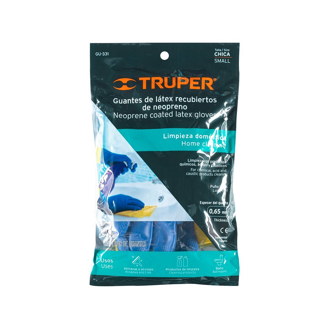 Guantes de látex reforzados para limpieza talla chica TRUPER cantidad