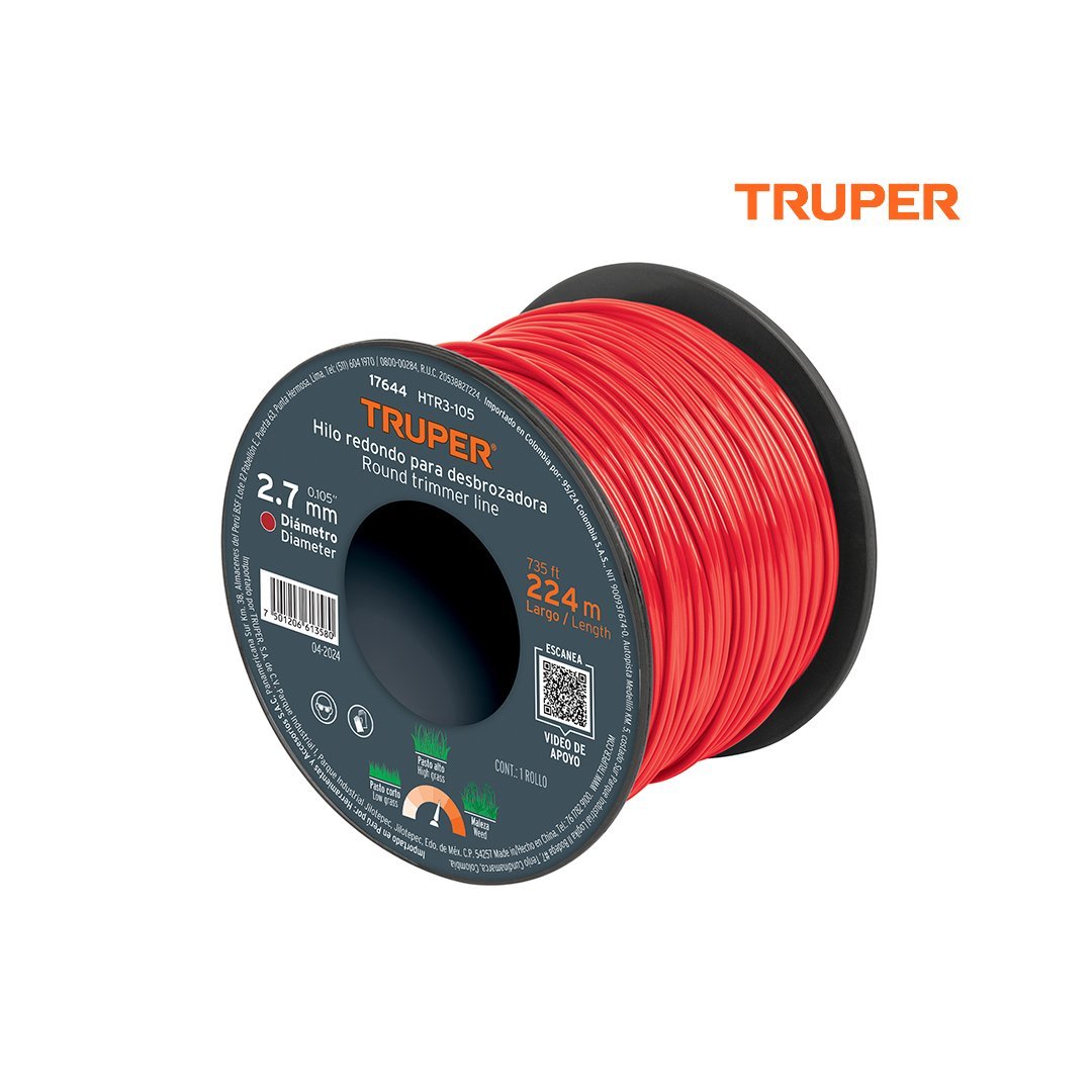 Hilo redondo para desbrozadora en carrete 2.7 mm x 224 m TRUPER cantidad