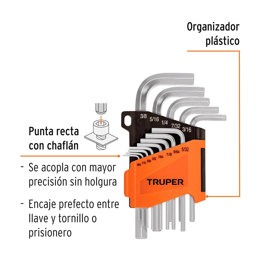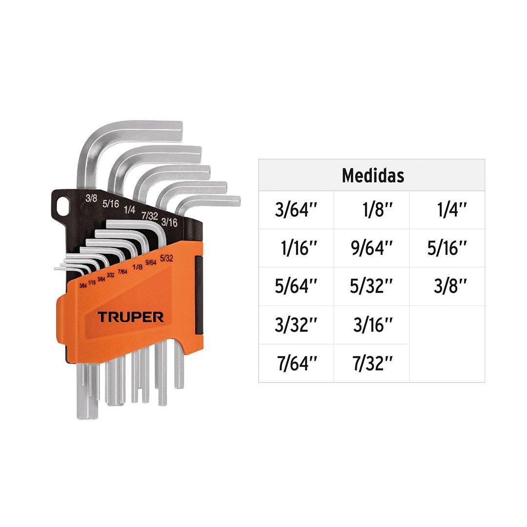 Juego 13 llaves allen std punta hexagonal con organizador TRUPER