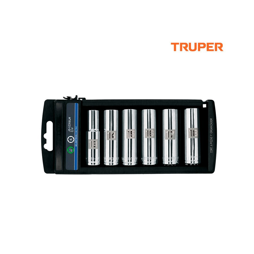 Juego 6 dados tubulares cuadro 1/2" mm TRUPER cantidad