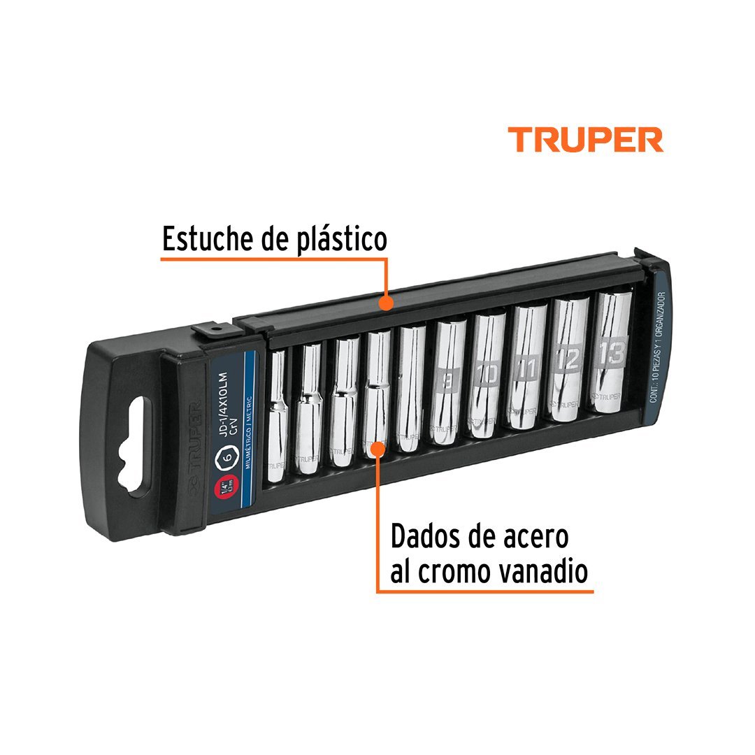 Juego de 10 dados tubulares cuadro 1/4" TRUPER cantidad