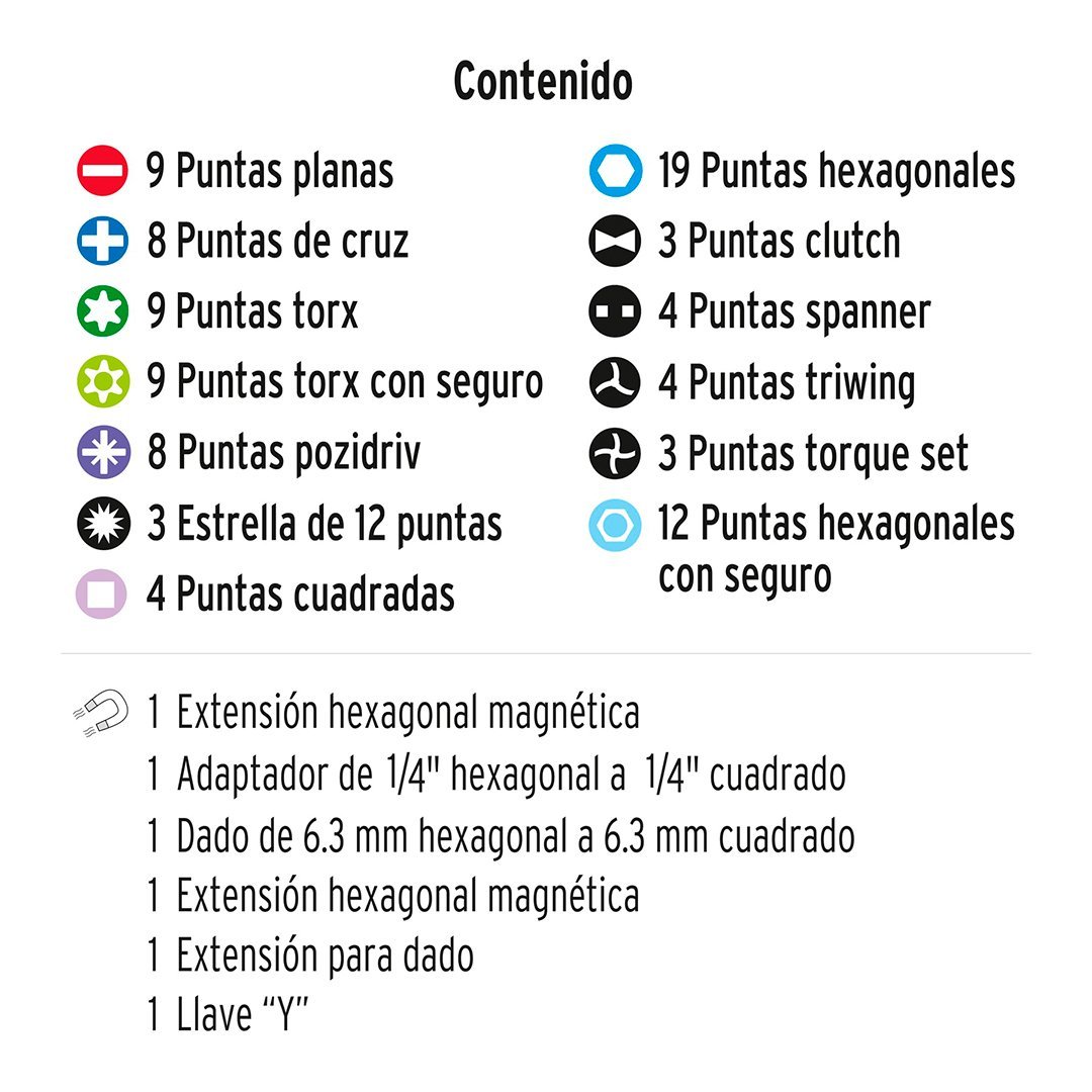 | 3 Puntas torque set | 1 Extensión hexagonal magnética |