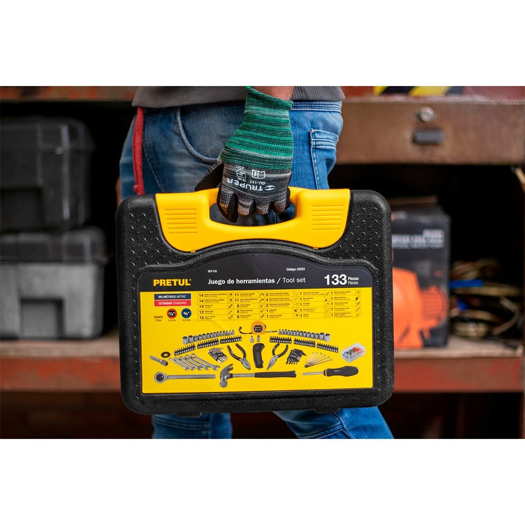 | 5 Llaves combinadas: 1/4″ a 1/2″ | 1 Pinza de electricista: 6″ (150 mm) |
