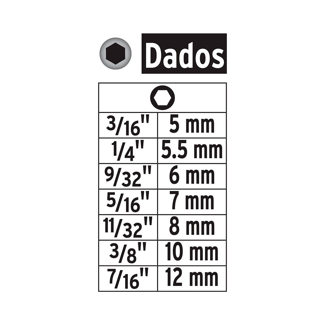 7 Dados magnéticos (3/16″, 1/4″, 9/32″, 5/16″, 11/32″, 3/8″ y 7/16″)