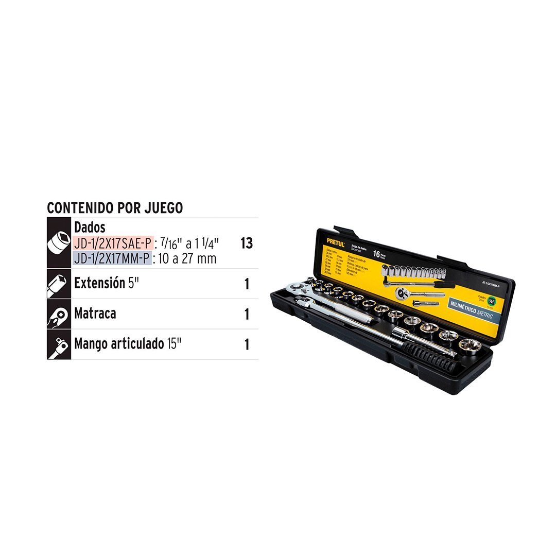 Juego de 16 herramientas para mecánico 1/2" mm PRETUL cantidad