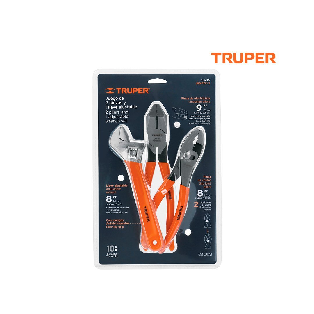 Juego de 2 Alicates y 1 Llave Francesa TRUPER