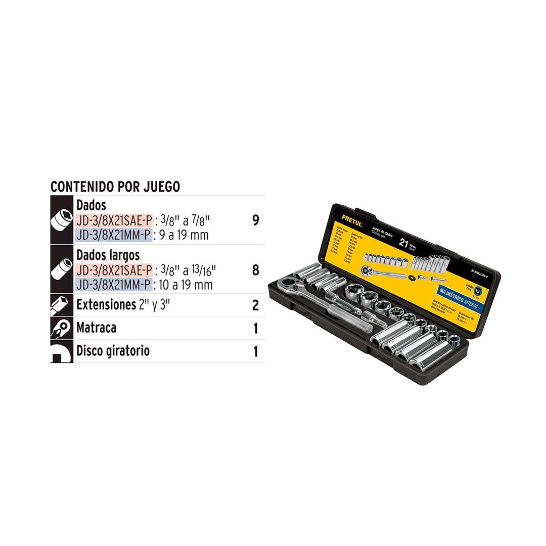 Juego de 21 herramientas para mecánico 3/8″ mm PRETUL