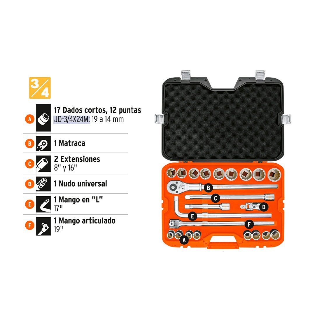 Juego de 23 herramientas cuadro 3/4" mm para mecánico TRUPER cantidad