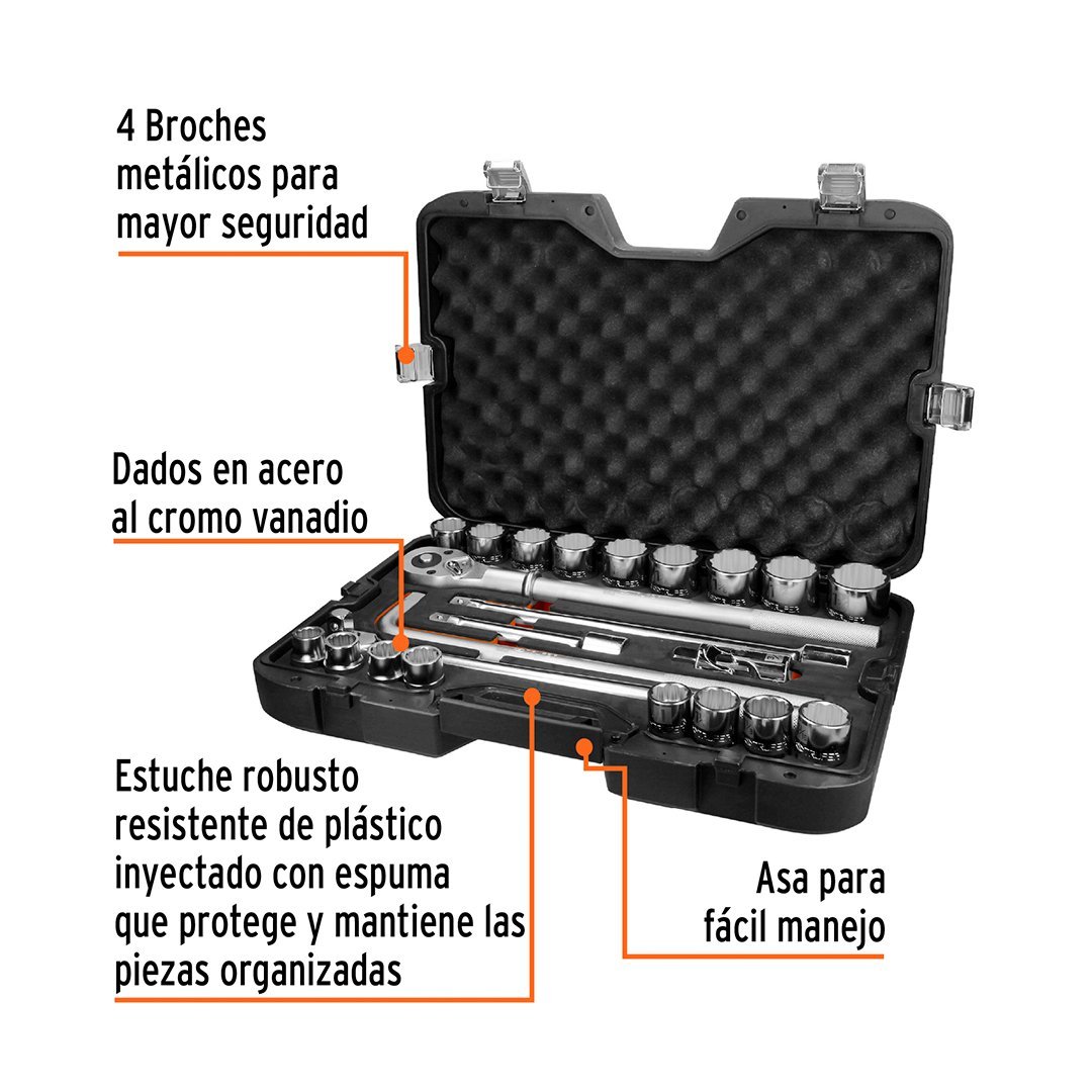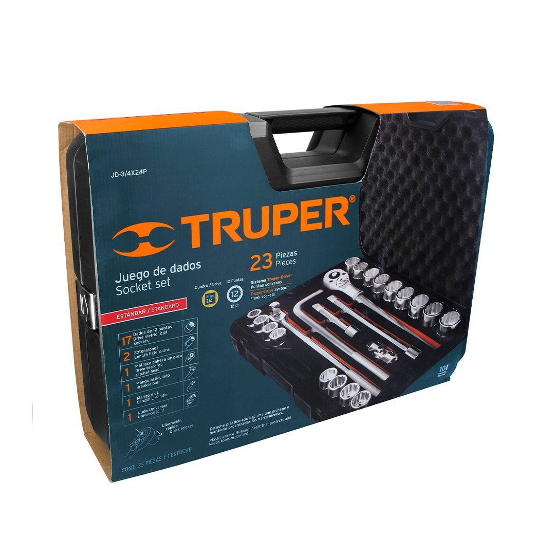 Juego de 23 herramientas cuadro 3/4″ std para mecánico TRUPER