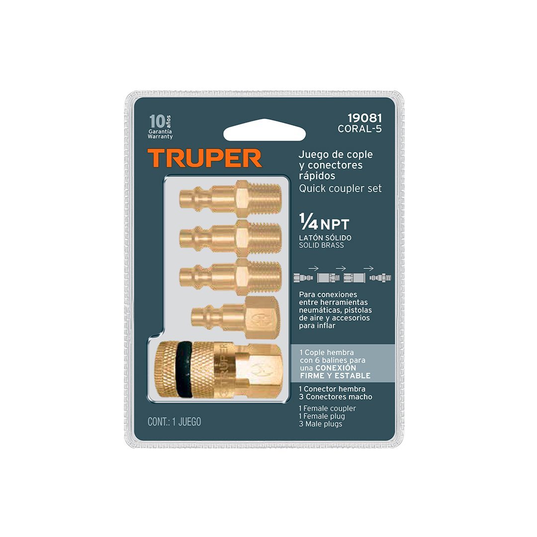 Juego de 4 conectores rápidos y 1 acople TRUPER