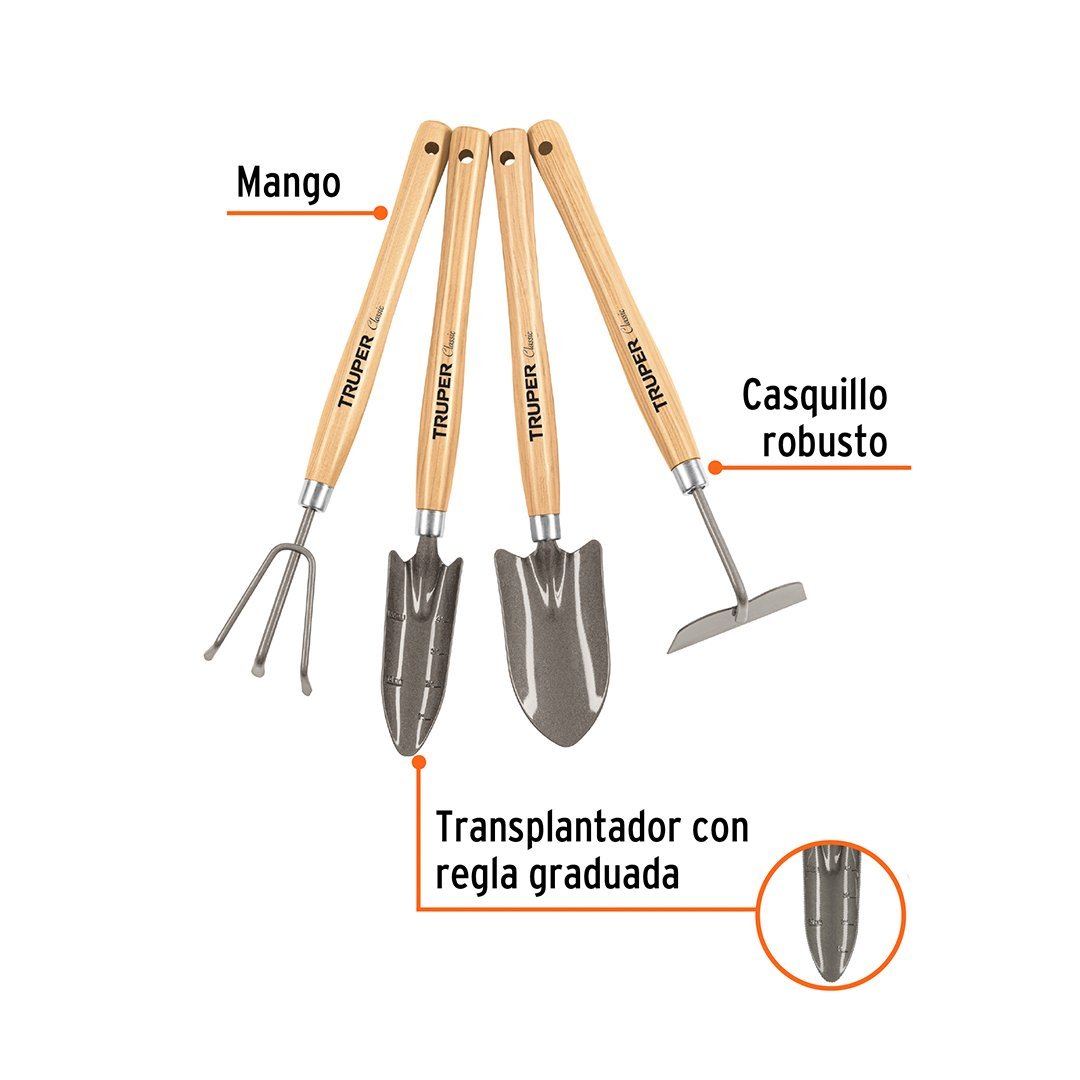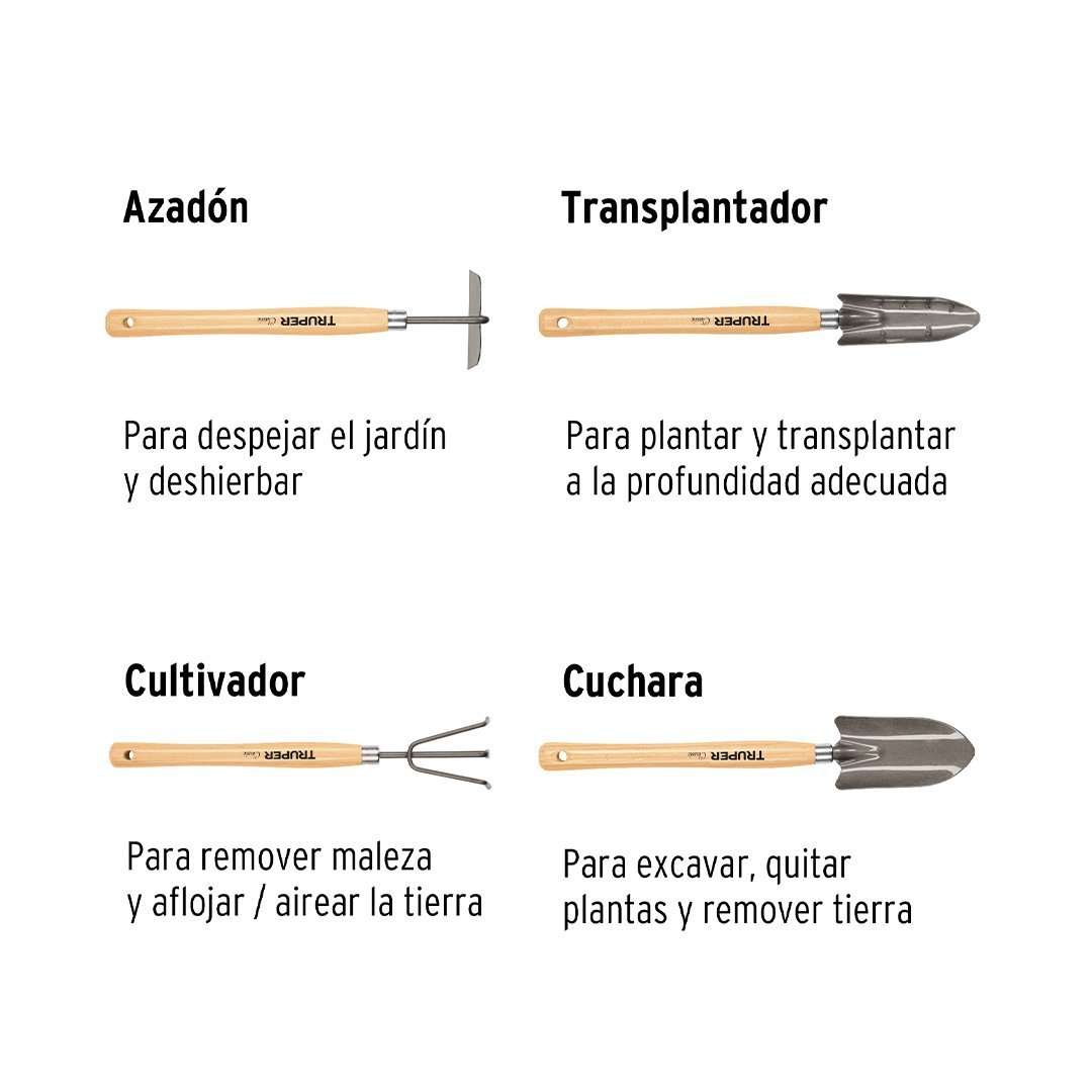 Juego de 4 herramientas para jardín, mangos 31 cm TRUPER cantidad