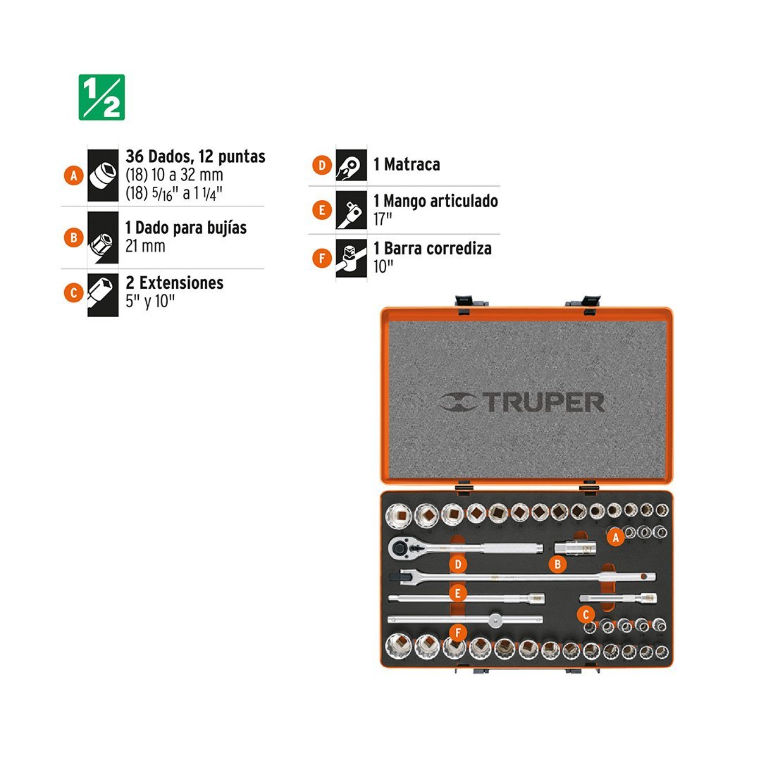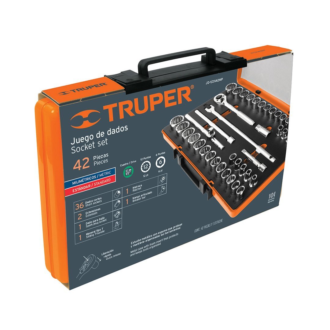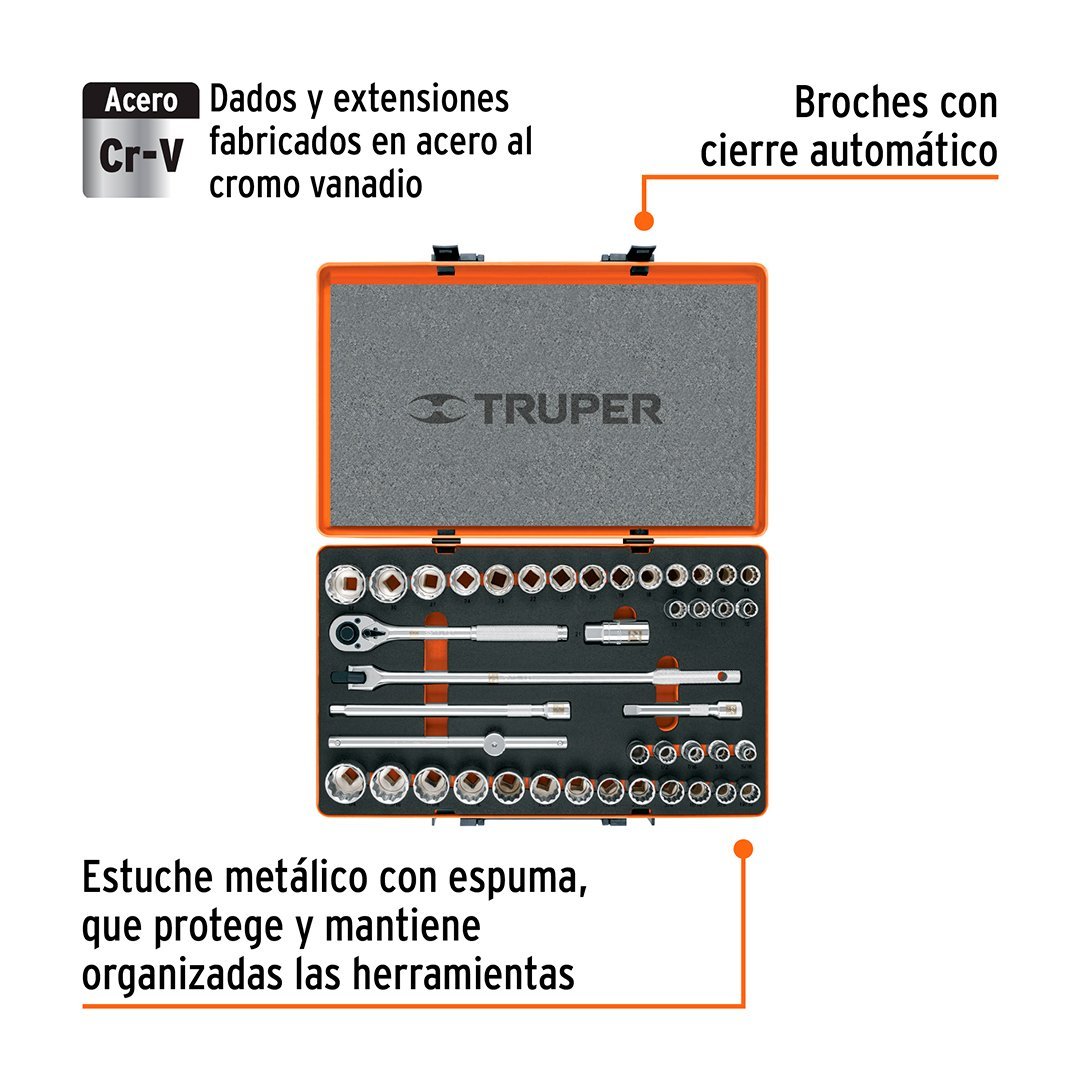 Juego de 42 herramientas para mecánico, cuadro 1/2" std y mm TRUPER cantidad