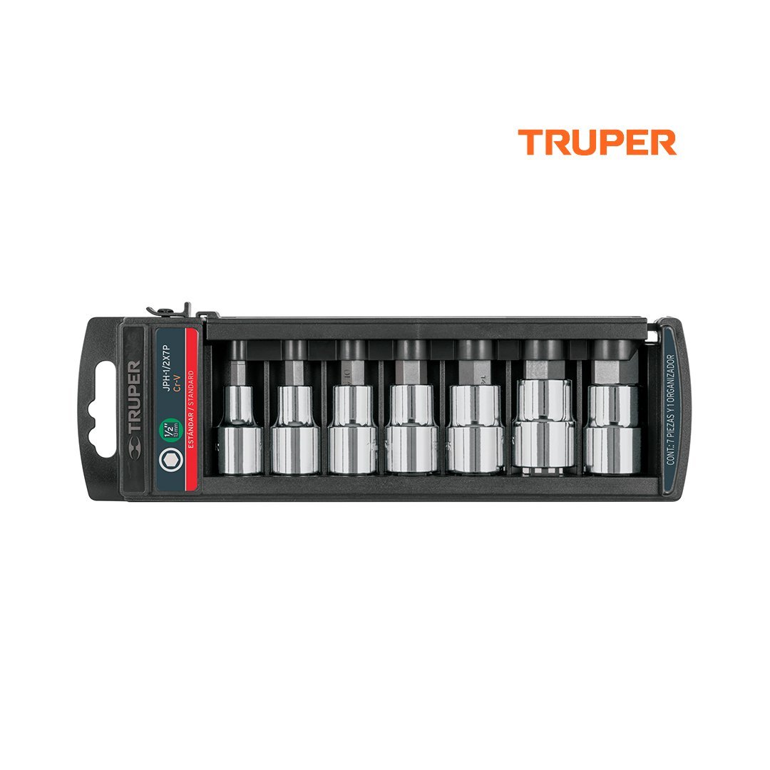 Juego de 7 dados cuadro 1/2" punta hexagonal pulgadas TRUPER cantidad
