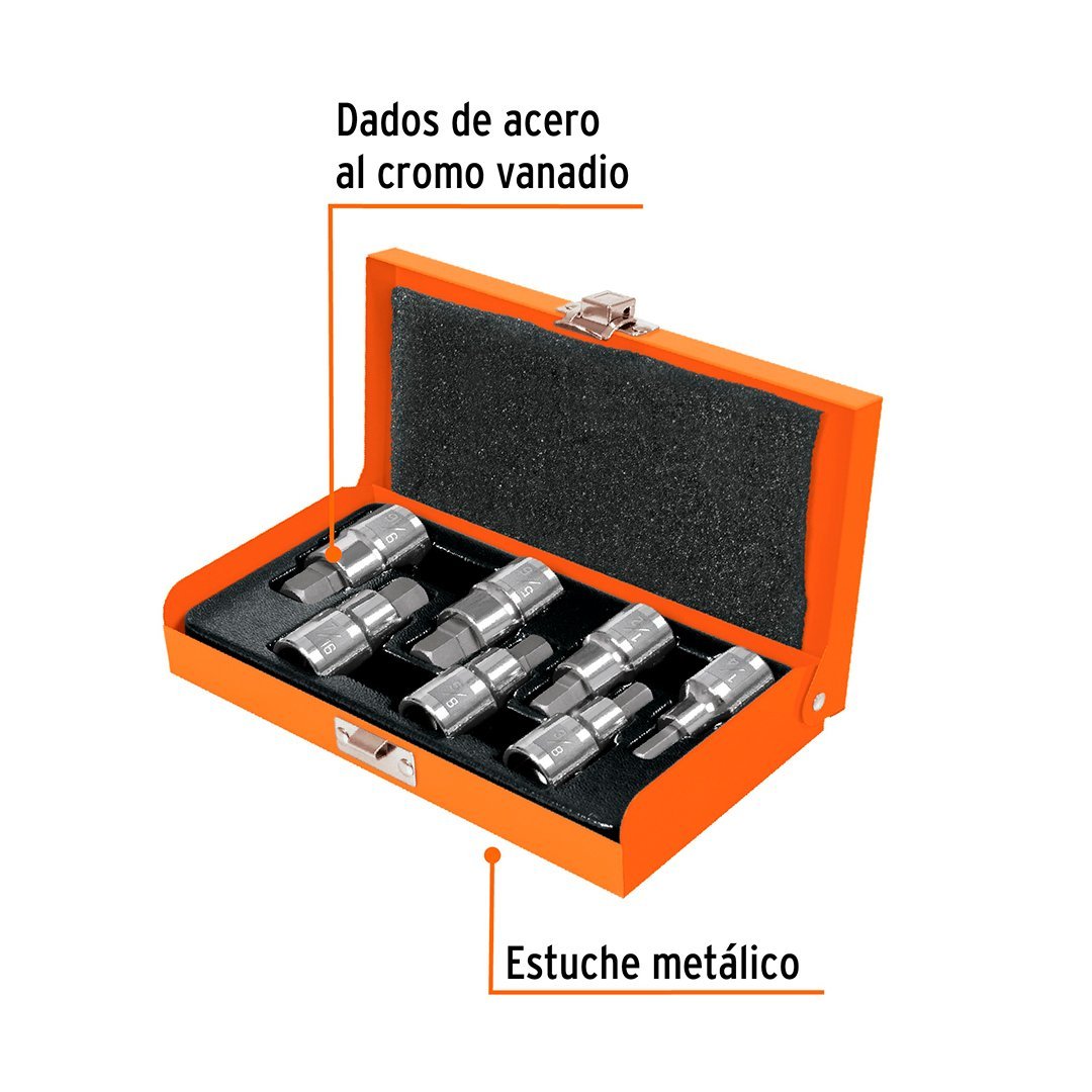 Juego de 7 dados cuadro 1/2″ punta hexagonal TRUPER