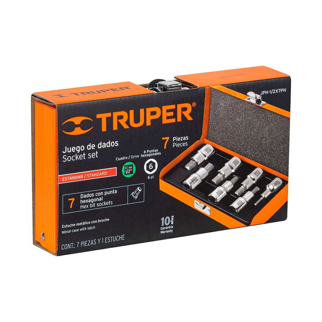 Juego de 7 dados cuadro 1/2" punta hexagonal TRUPER cantidad