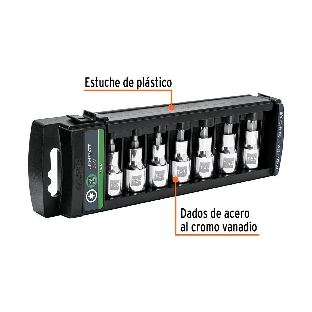 Juego de 7 dados cuadro 1/2″ punta torx TRUPER