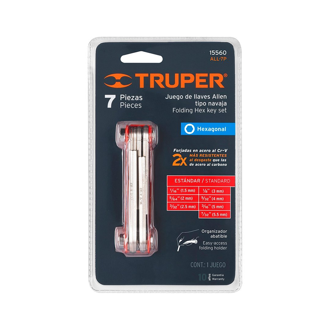 Juego de 7 llaves allen std tipo navaja, cuerpo de lámina TRUPER