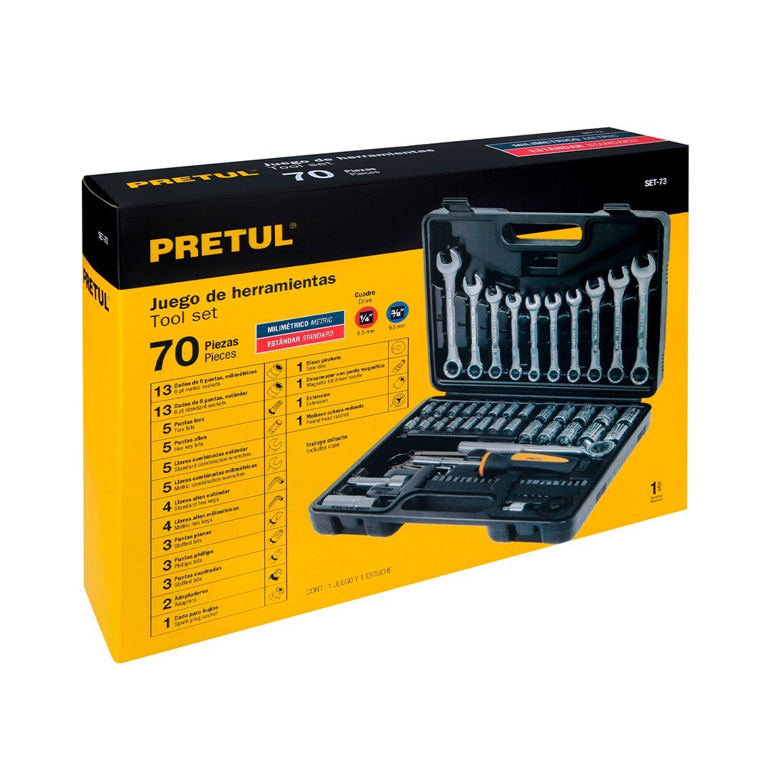 Juego de 70 herramientas para mecánico 1/4″ y 3/8″ PRETUL