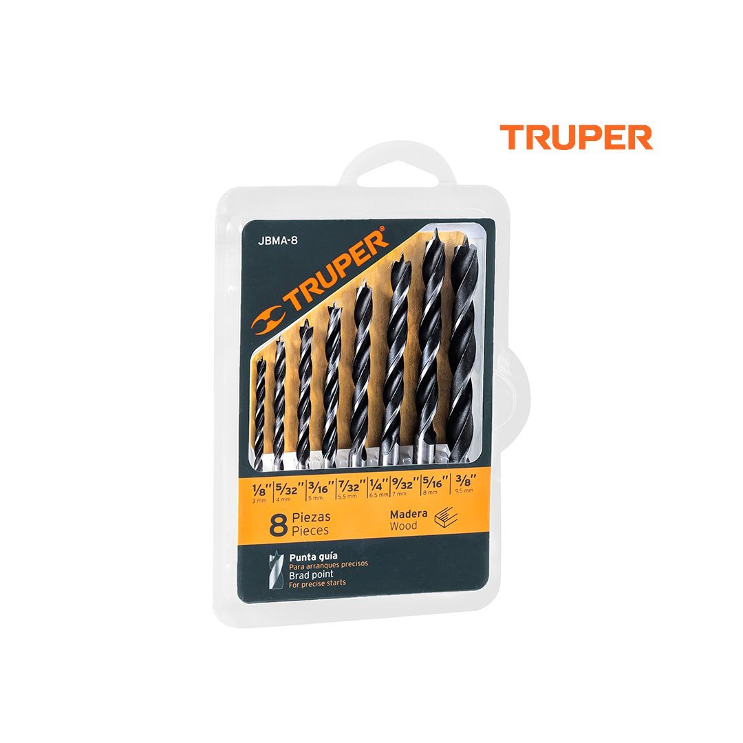 Juego de 8 Brocas Punta Centradora Para Madera TRUPER