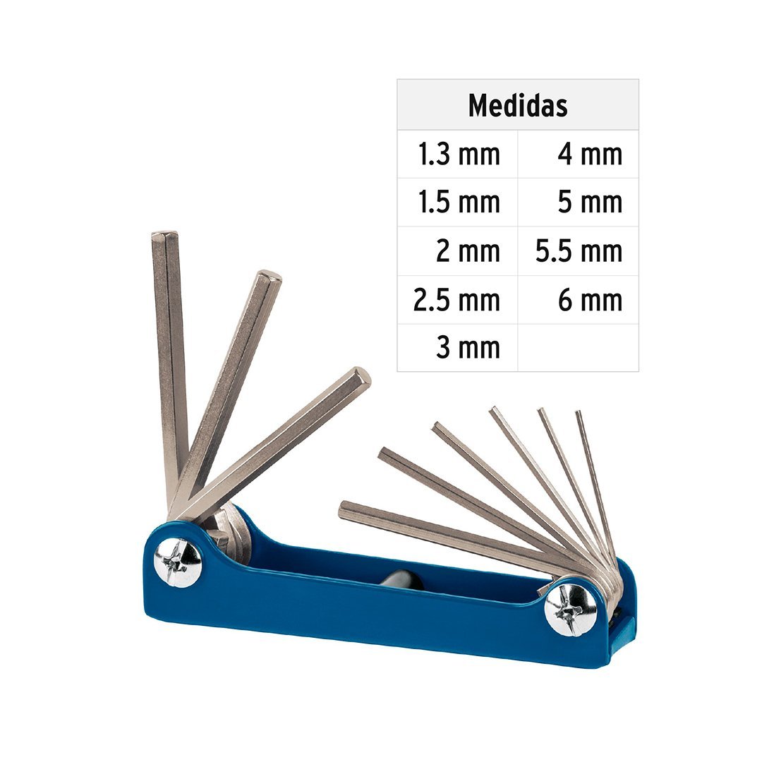 9 llaves (1.3 mm, 1.5 mm, 2 mm, 2.5 mm, 3 mm, 4 mm, 5 mm, 5.5 mm y 6 mm)