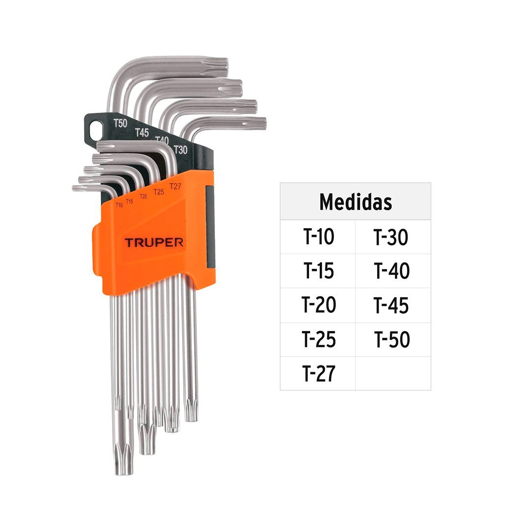Contenido 9 llaves torx (T-10, T-15, T-20, T-25, T-27, T-30, T-40, T-45, T-50)