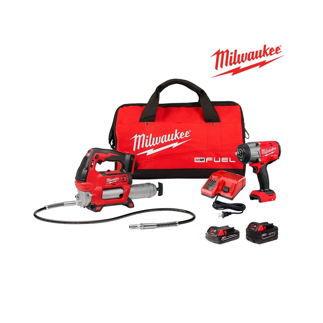 Nuestro kit combinado M18 FUEL™ de ½” HTIW con anillo de fricción y pistola engrasadora incluye la llave de impacto de mayor potencia de su clase, proporciona mayor acceso en espacios reducidos y maximiza la productividad gracias a velocidades de extracción más rápidas. El motor sin escobillas POWERSTATE™ ofrece hasta 1100 ft-lb de torque de apriete y 1500 ft-lb de torque de desenroscado al combinarse con nuestra batería M18™ REDLITHIUM™ XC5.0. Su tamaño compacto de 7.6″ de longitud permite a los usuarios acceder fácilmente a espacios reducidos. La llave de impacto de alto torque M18 FUEL™ de ½” con anillo de fricción maximiza la productividad en la obra y en el taller, extrayendo pernos y sujetadores difíciles más rápido que las herramientas inalámbricas de la competencia.