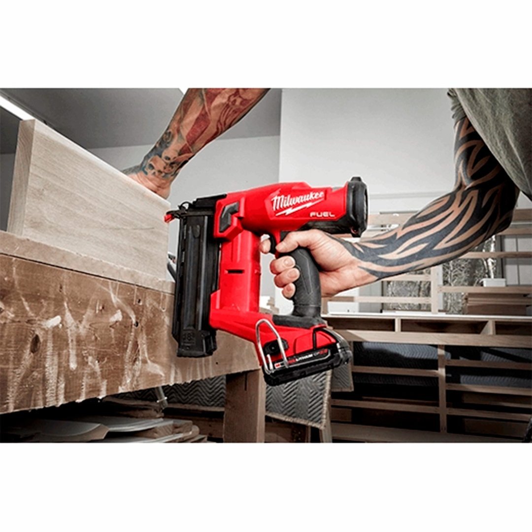 El kit de clavadora para clavos sin cabeza calibre 18 M18 FUEL™ ofrece la máxima productividad en su lugar de trabajo, lo que le proporciona un rendimiento de clavado sin comparación y sin los problemas de un compresor y una manguera. La clavadora para clavos sin cabeza, que aprovecha nuestro mecanismo de resorte neumático con nitrógeno, le permite colocar clavos a la profundidad adecuada en maderas blandas y duras mientras deja orificios de clavos limpios que coinciden con la cabeza del clavo.
