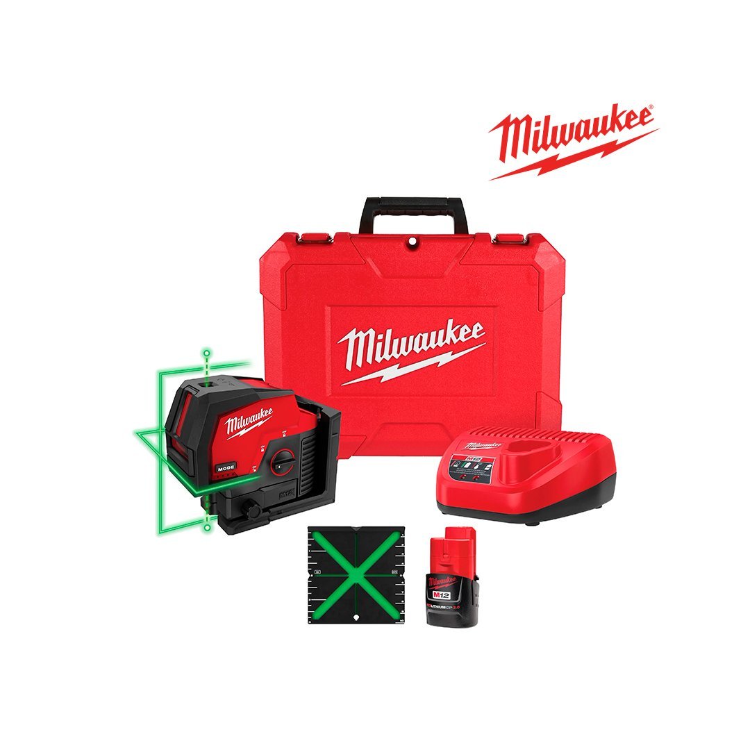 Kit de Láser de Puntos de Plomada y Líneas Cruzadas Verdes M12 MILWAUKEE