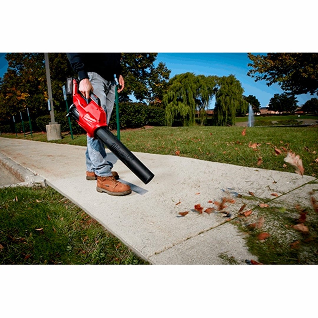 El soplador M18 FUEL™ tiene la capacidad para despejar desde 15 pies, alcanza la aceleración máxima en menos de 1 segundo y es hasta 4 lb más liviano que la competencia. Diseñado para satisfacer las necesidades de los profesionales del mantenimiento de jardines, el motor sin escobillas POWERSTATE™ y la batería XC8.0 REDLITHIUM™ HIGH OUTPUT™ ofrecen una potencia de salida de 450 CFM y 120 MPH. El soplador cuenta con un gatillo de velocidad variable y ajuste de velocidad alta y baja para un mayor control. El ajuste de velocidad alta es para las aplicaciones más exigentes y el de velocidad baja está optimizado para limpiar escombros de arriates sin mover mantillo. El botón de bloqueo permite bloquear el soplador en aceleración completa, de esta manera la mano que opera el soplador se puede relajar, lo que reduce la fatiga. El soplador M18 FUEL™ es completamente compatible con más de 200 soluciones en el sistema M18™.