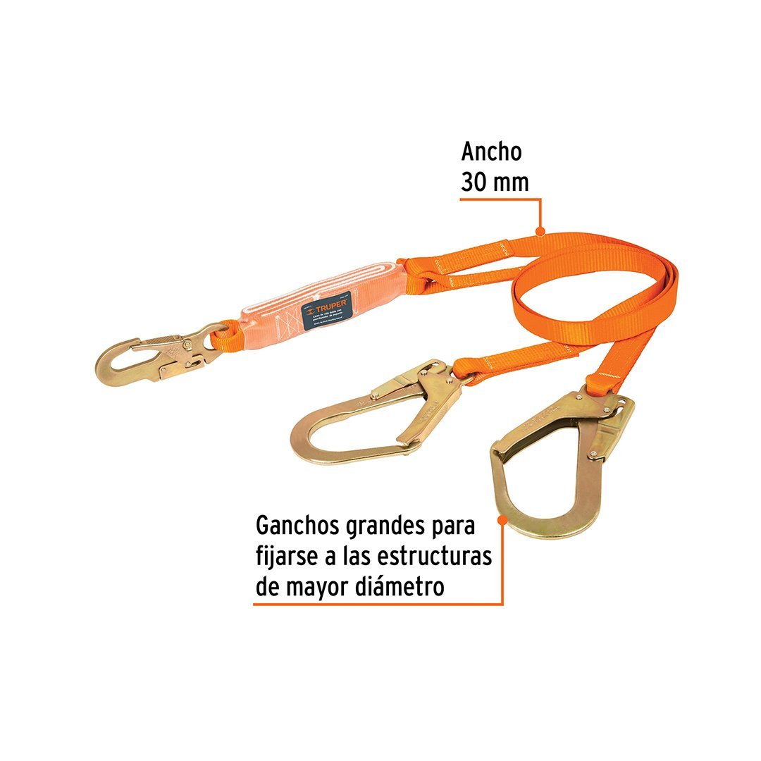 • Ganchos de acero forjado con mecanismo de doble bloqueo, para fijarse a estructuras de mayor diámetro