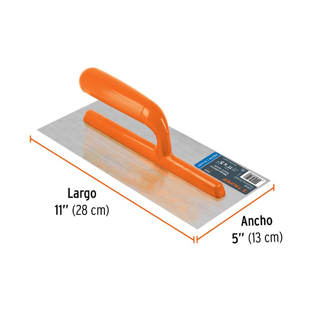 Llana 11" x 5" canto recto, 6 remaches, mango plástico TRUPER cantidad