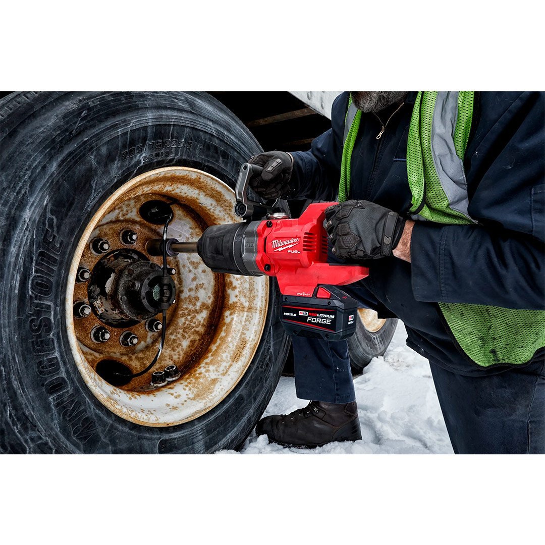 El kit de llave de impacto de alto torque con yunque extendido y mango en D M18 FUEL™ de 1″ con ONE-KEY™ cuenta con la primera llave de impacto de alto torque inalámbrica con mango en D de 1″ en el mundo. El motor sin escobillas POWERSTATE™ ofrece hasta 2,000 pies-lb de torque de arranque y 1,900 pies-lb de torque de fijación, lo que la convierte en la llave de impacto inalámbrica más potente y le permite realizar las aplicaciones más exigentes. Con el tiempo de operación para instalar y extraer hasta 120 tuercas de llanta con una sola batería HIGH OUTPUT™ 12.0 Ah, esta llave de impacto portátil proporciona un rendimiento sin igual.