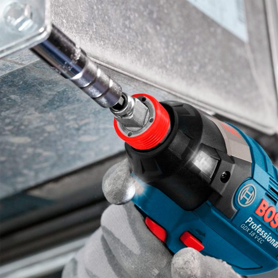 La única llave de impacto con encastre doble en el mercado (1/2” y 1/4”).