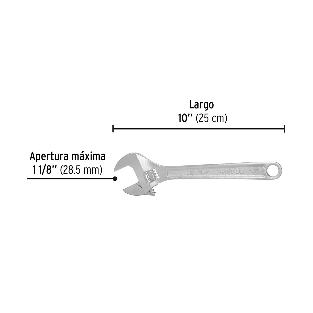 Llave francesa 10″ cromada PRETUL