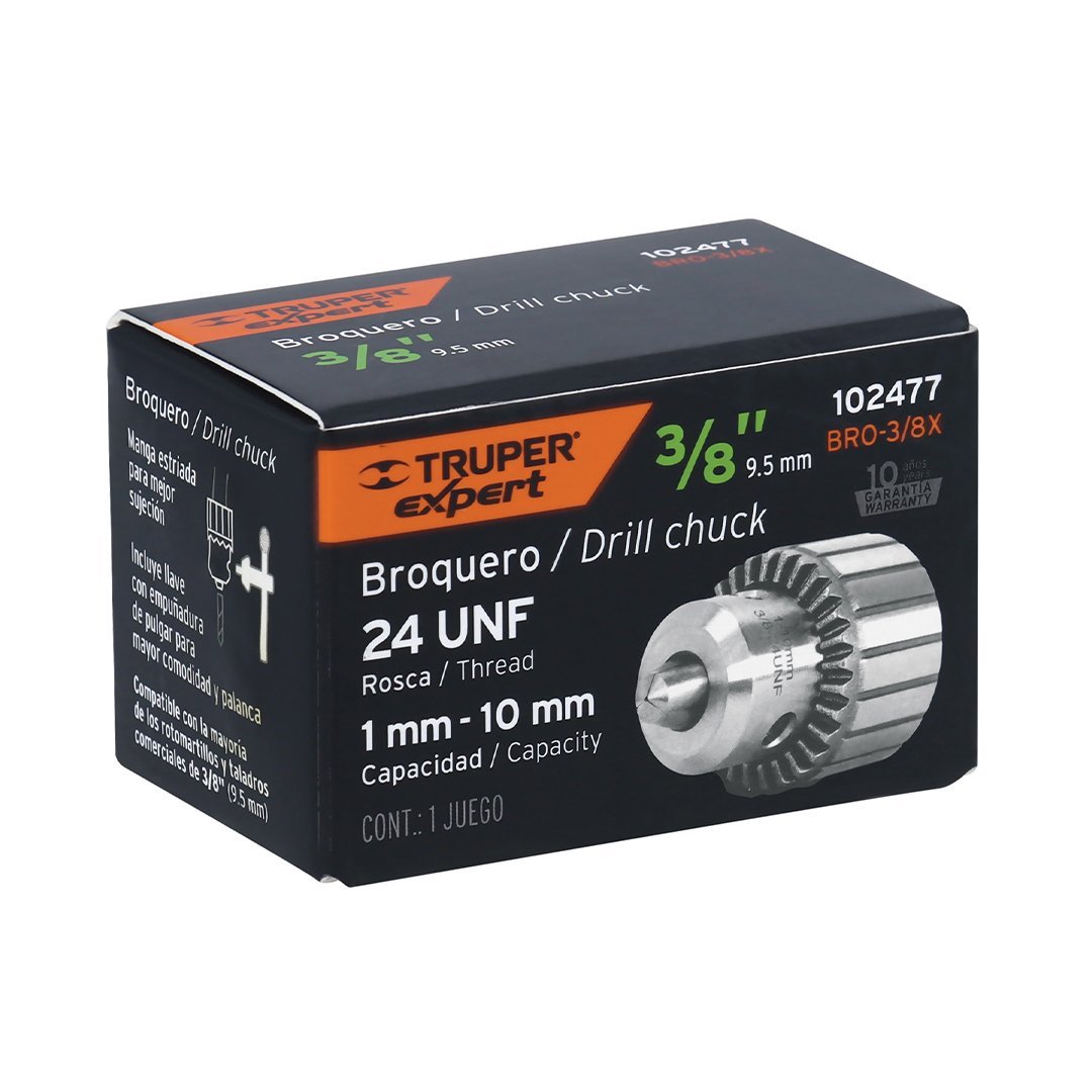 Mandril 3/8″ con llave, cuerpo estriado TRUPER