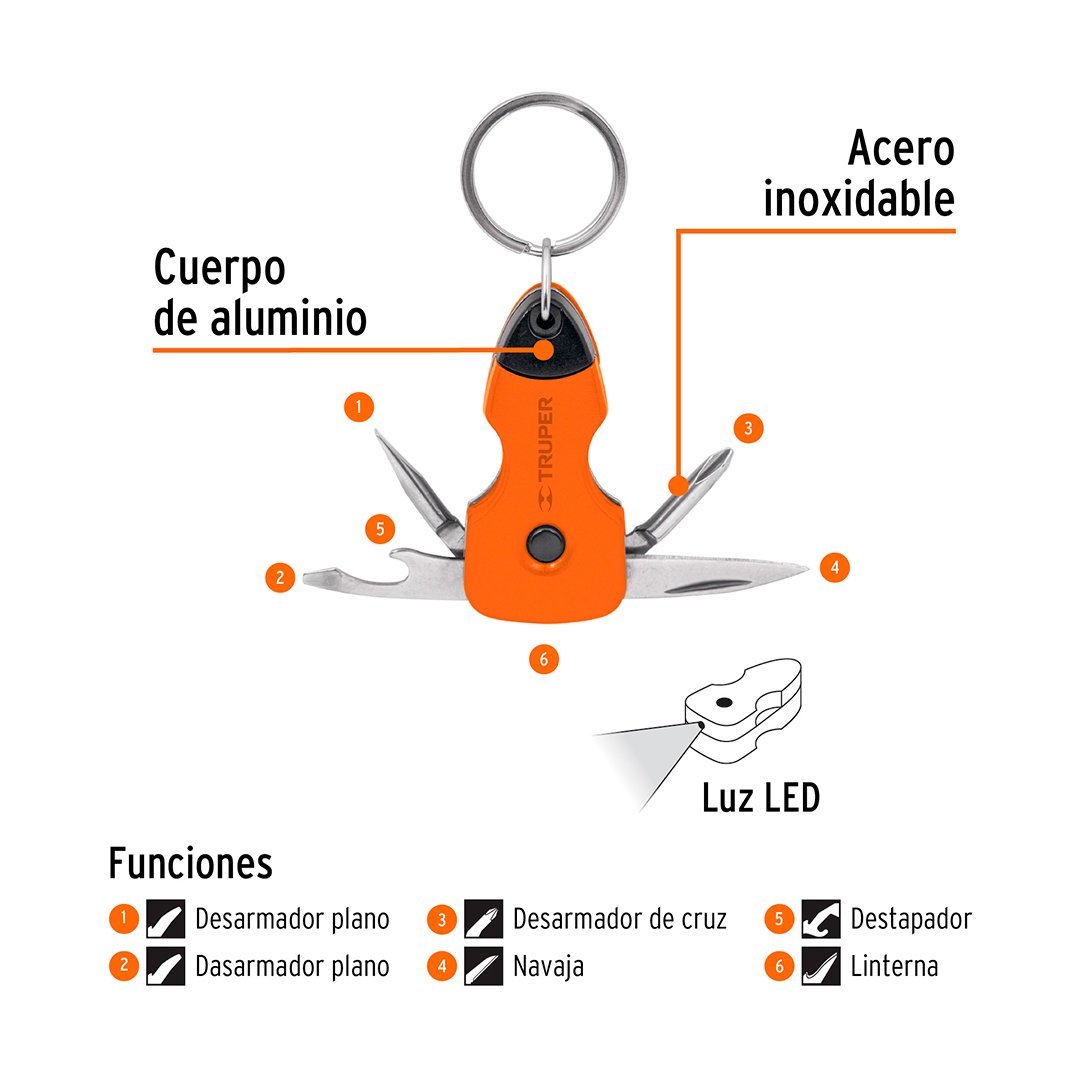 Multiherramienta 6 funciones con LED, tipo llavero TRUPER cantidad