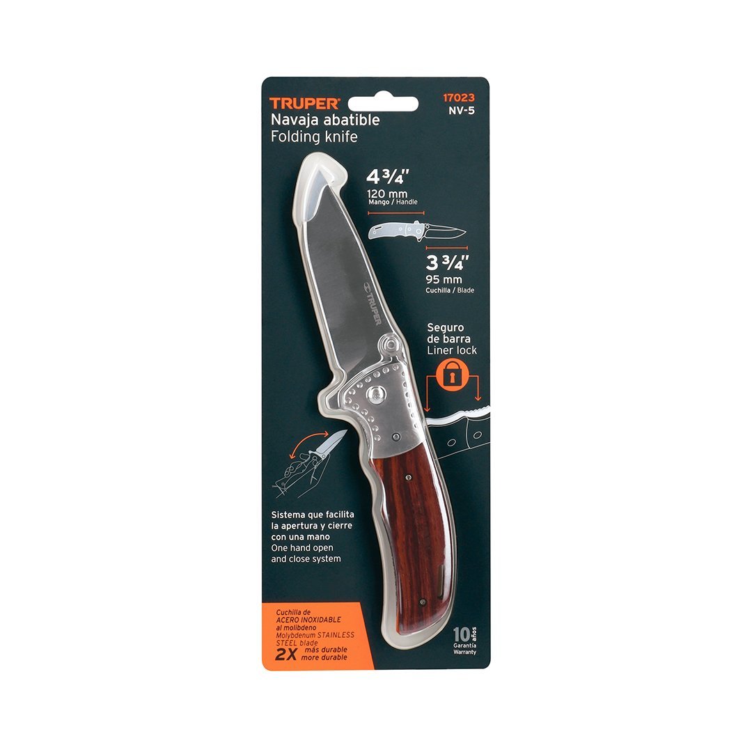 Navaja plegable 4 3/4" mango de madera TRUPER cantidad