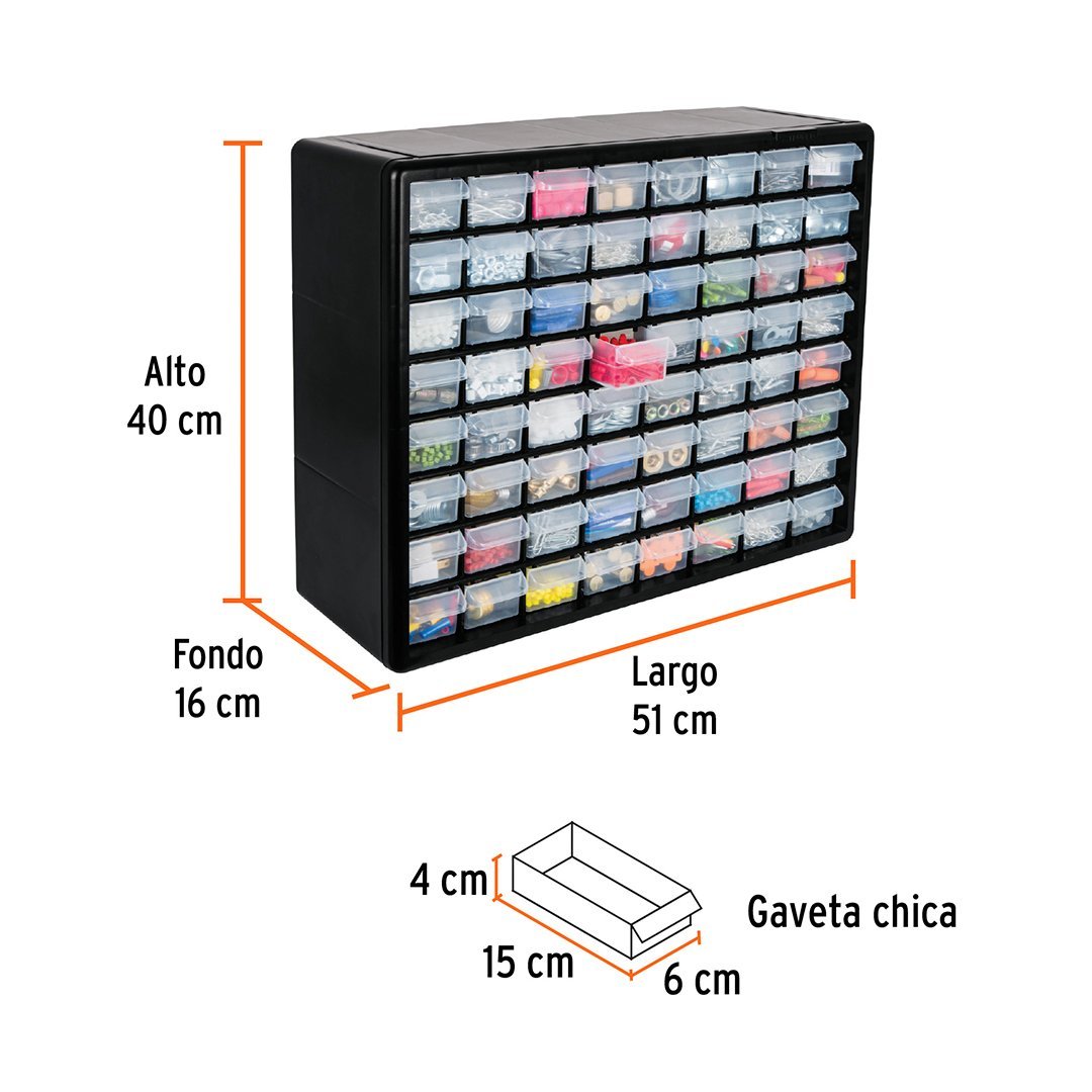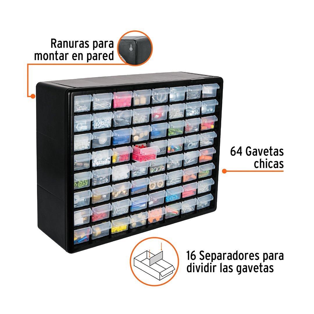 16 Separadores para dividir las gavetas, ubicados al reverso del organizador