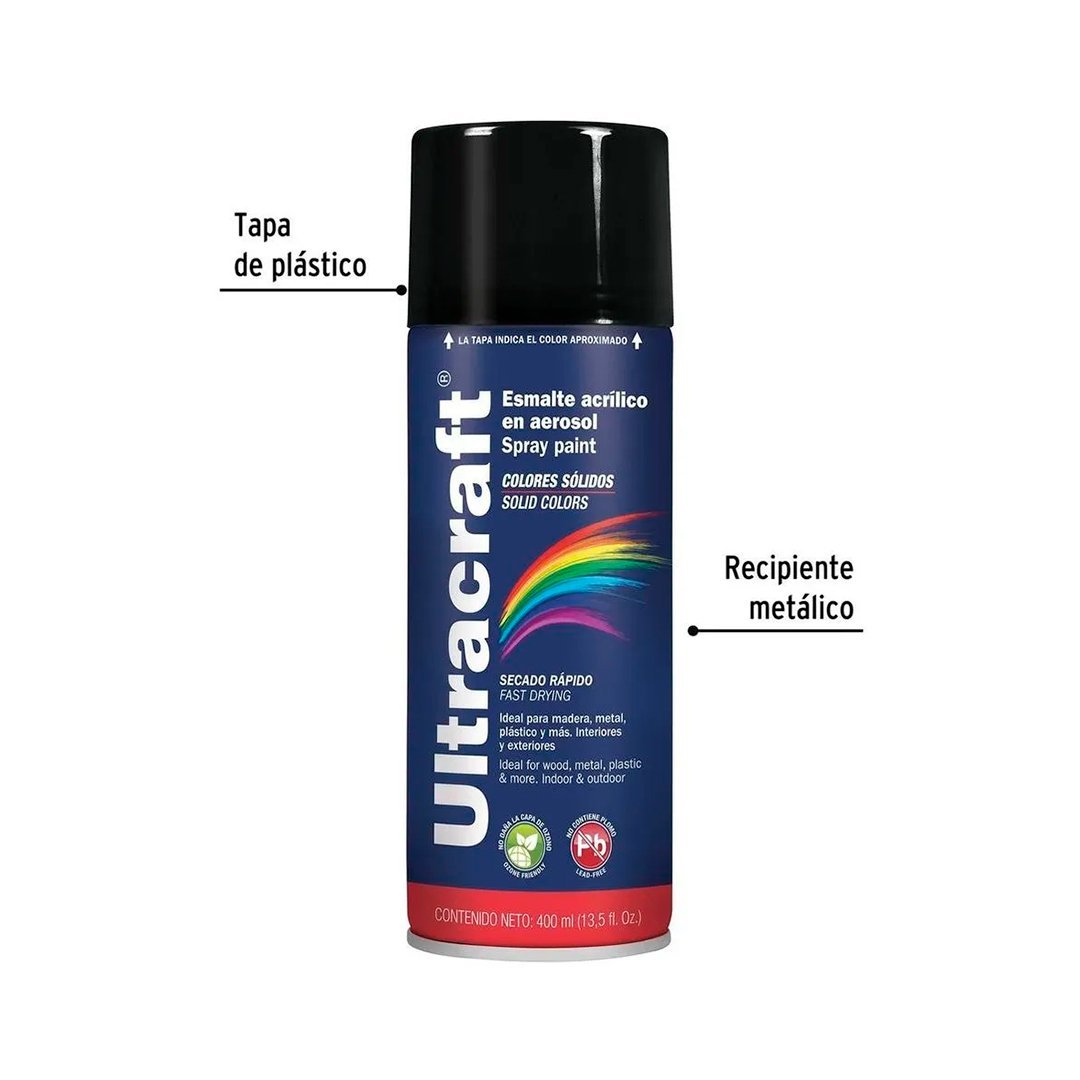 Pintura en aerosol color NEGRO BRILLANTE, Ultracraft cantidad