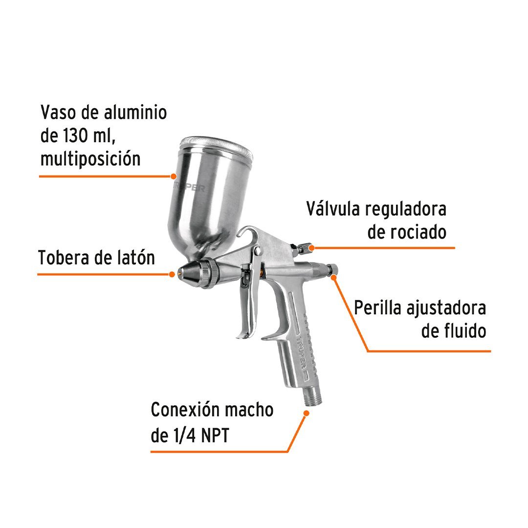 Pistola de aire compacta para retoque, vaso aluminio 130 ml, 0.5 mm TRUPER