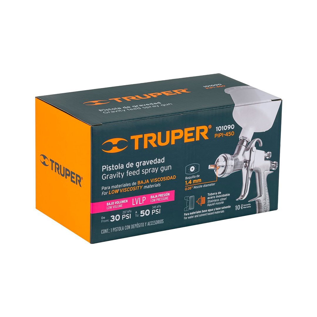 Pistola de aire de gravedad LVLP para pintar, vaso plástico 500 ml, 1.4 mm TRUPER