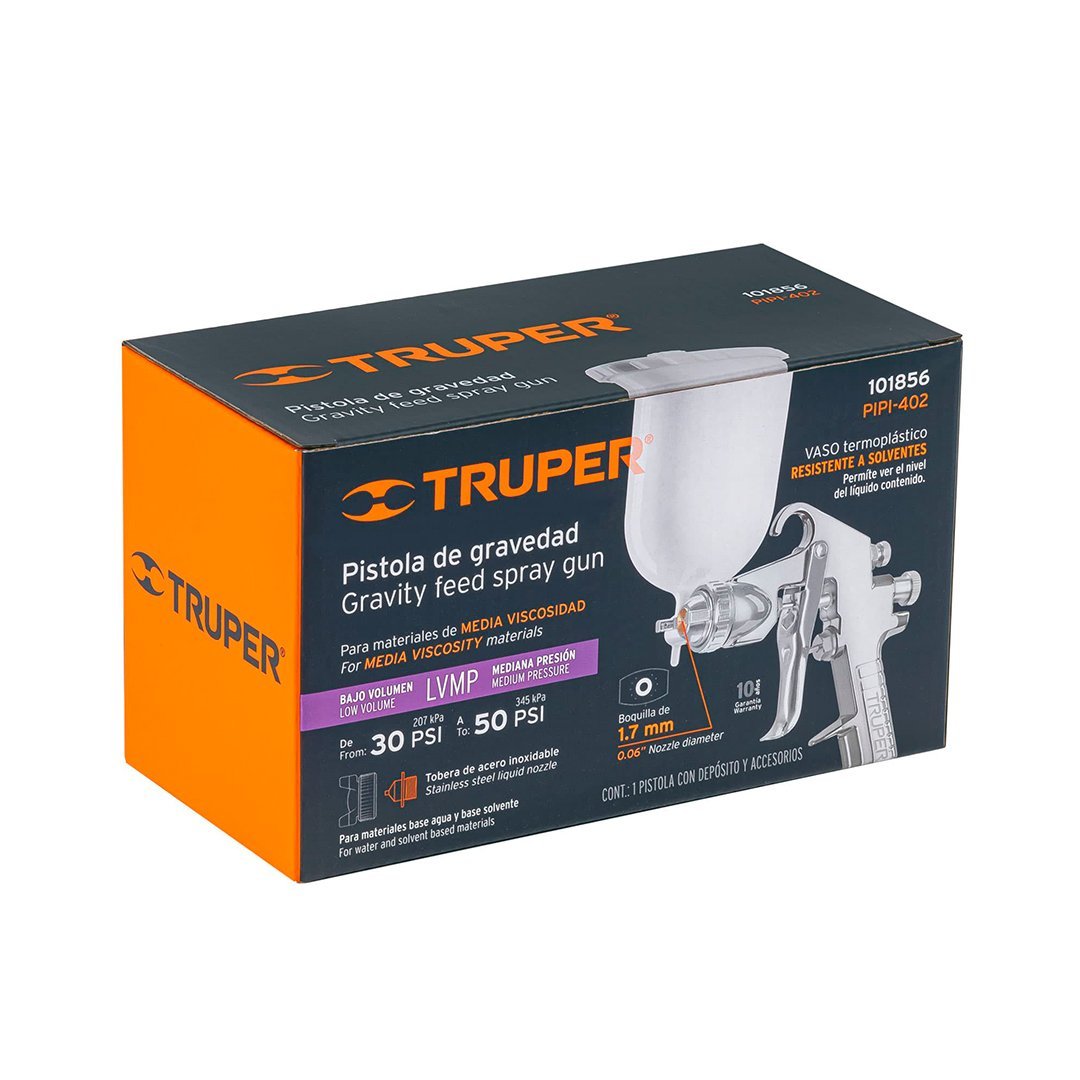Pistola de aire de gravedad LVMP para pintar, vaso plástico 400 ml, 1.7 mm TRUPER