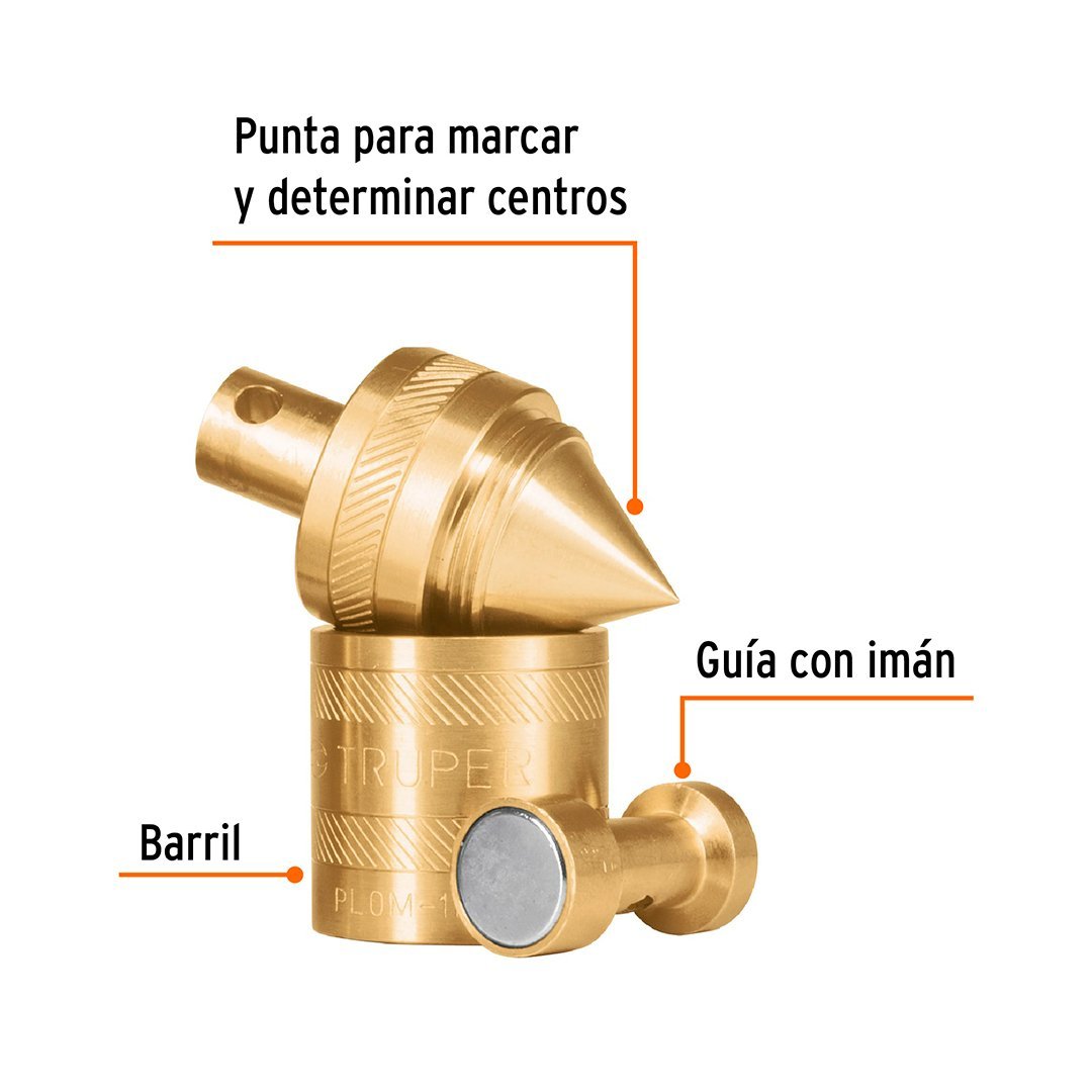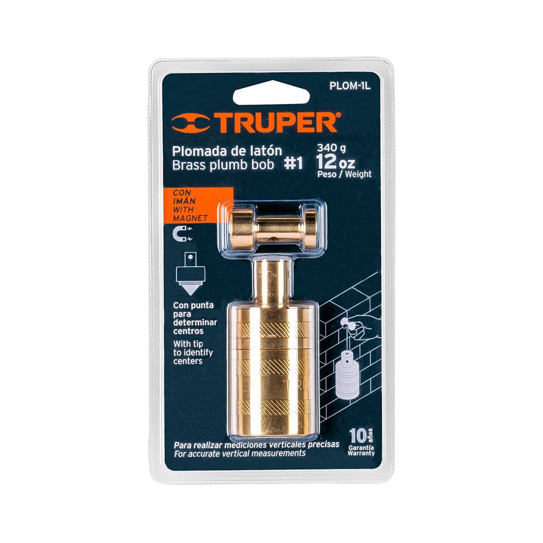 Plomada de latón 12 oz con centro y guía magnética TRUPER cantidad