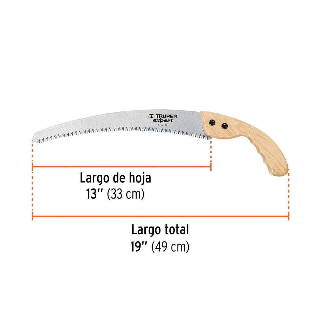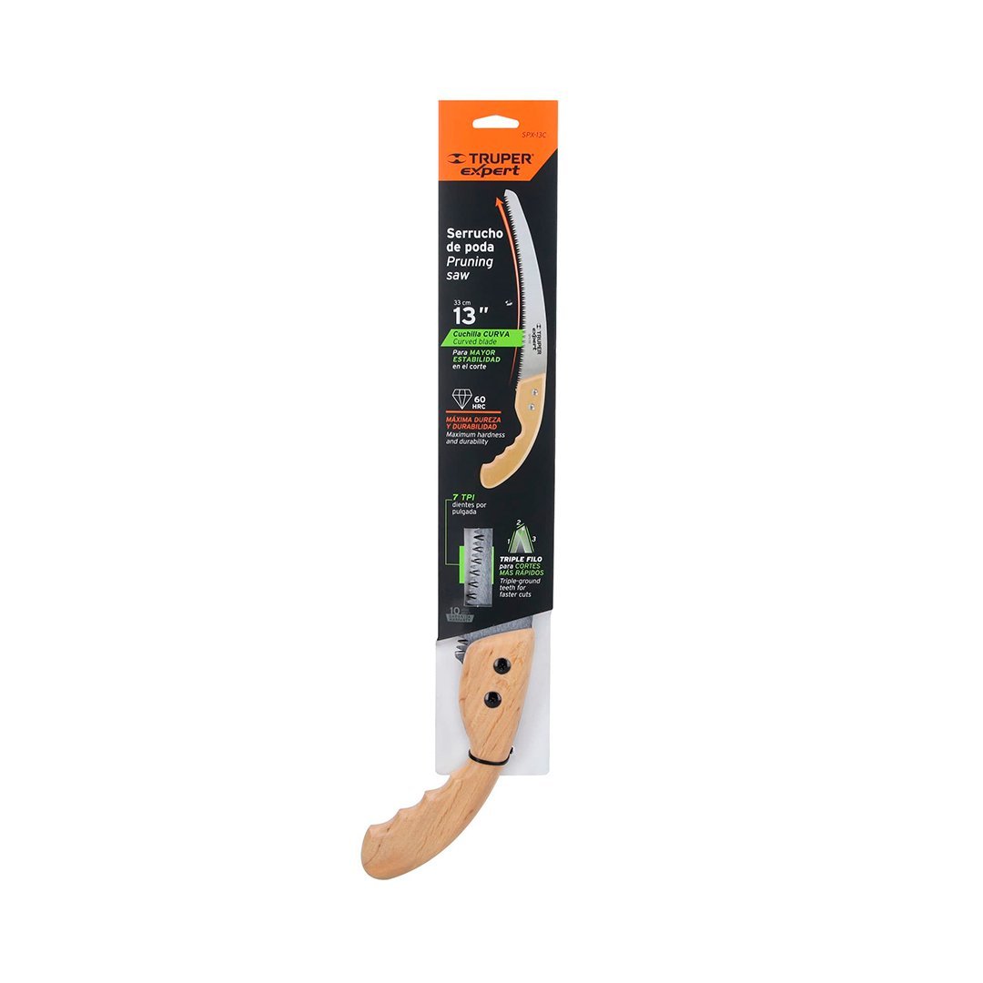 Serrucho de poda hoja curva 13" mango de madera TRUPER cantidad