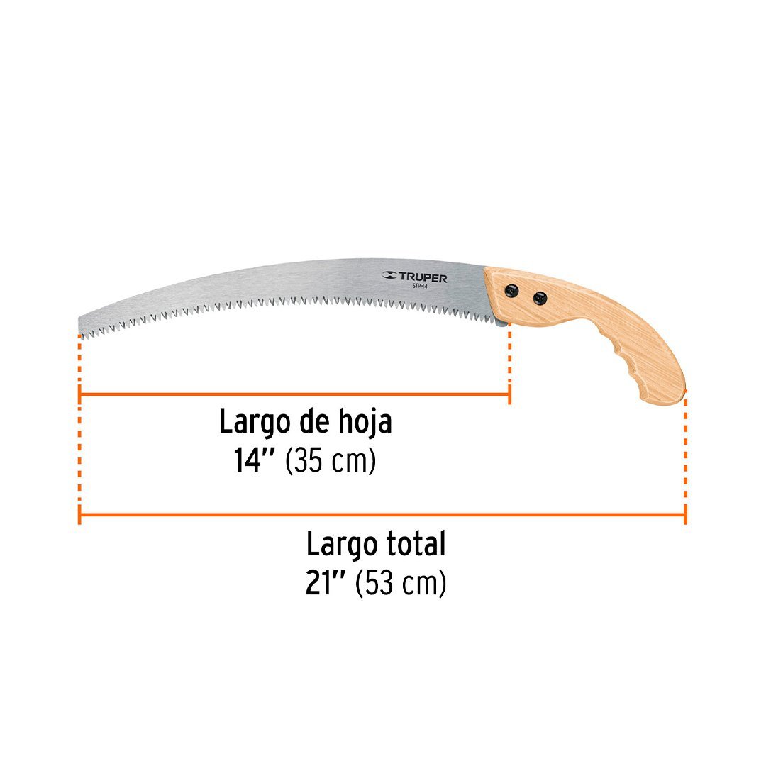 Serrucho de poda hoja curva 14″ mango de madera TRUPER