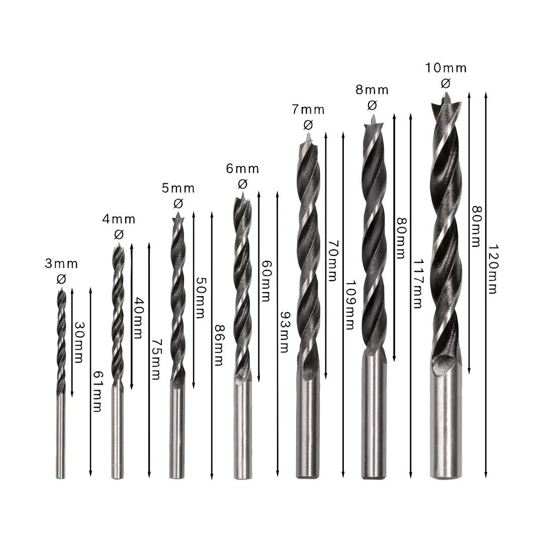 El juego de puntas Brad Point perfora con precisión madera blanda y dura