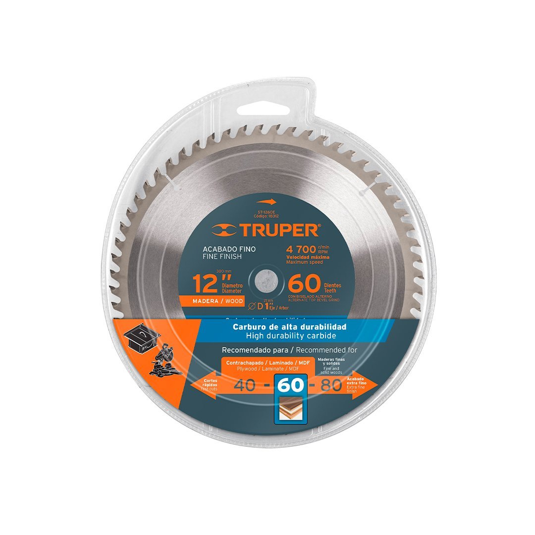 Sierra circular de 12″ para madera, 60 dientes TRUPER